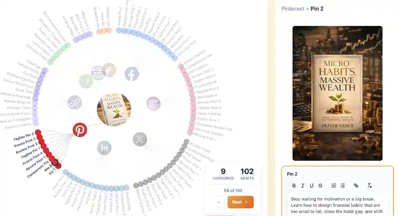 Your content is yours. If you upload a manuscript, outline, or project materials, they are analyzed securely to generate your marketing and authority systems. Your files are not used to train AI models and are not shared with other users.